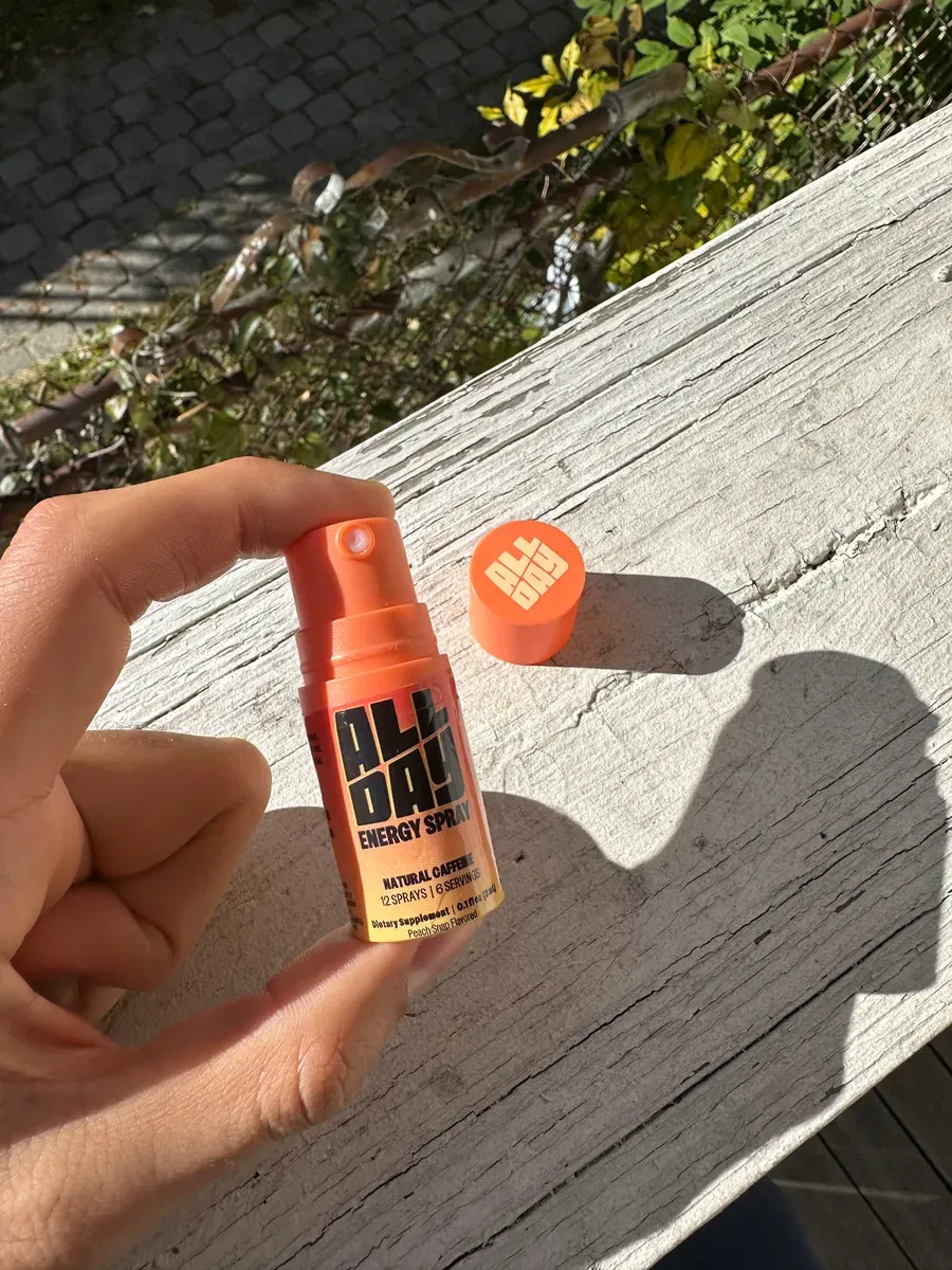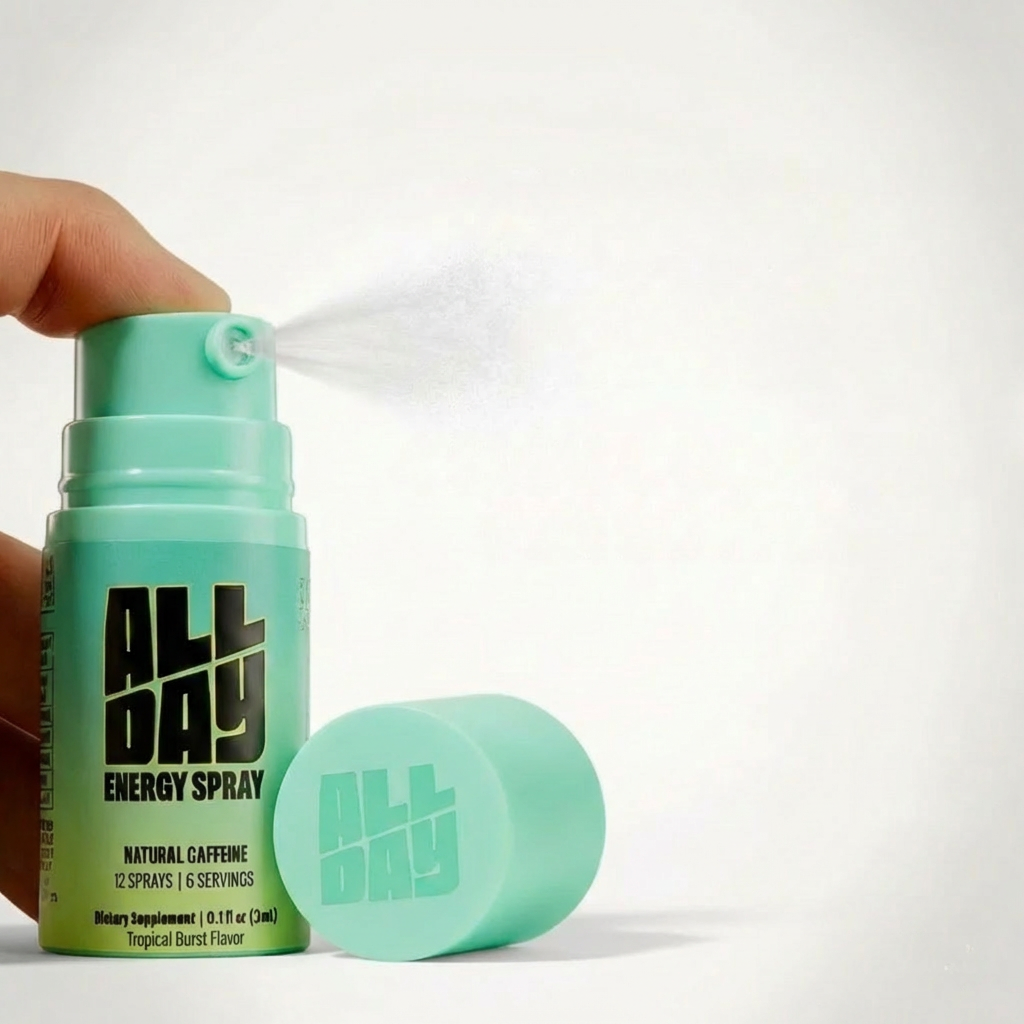 ALLDAY Energy Spray is a fast-acting, portable, pocket-sized energy spray made with natural caffeine and L-theanine from matcha. It delivers calm, focused energy right when you need it, without sugar, calories, or the crash of traditional energy drinks.